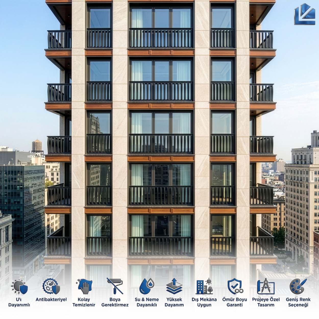 çizilme, darbe, su ve ateşe karşı yüksek dayanım, antibakteriyel yüzey ve yıkanabilir yapı özellikleriyle hem iç hem de dış mekân kullanımı için uzun ömürlü çözümler sunar.