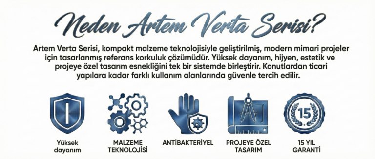 Mimari projelerden konut ve ticari yapılara kadar geniş bir alanda, modern tasarım anlayışı ve yüksek güvenlik standartlarıyla üretilen Artem Korkuluk sistemleri; dayanıklılığı, estetiği ve hijyeni tek bir çözümde buluşturur.